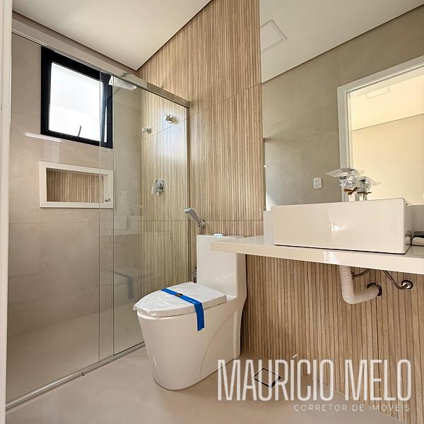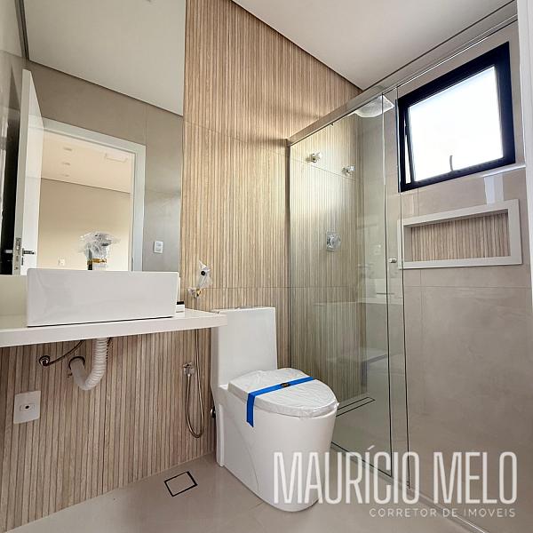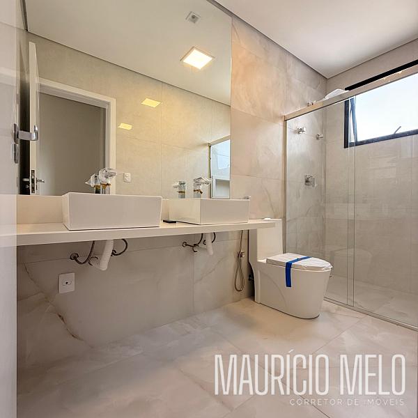 No pavimento superior, são 3 suítes (sendo 1 master) e sala íntima, infraestrutura preparada para ar-condicionado.