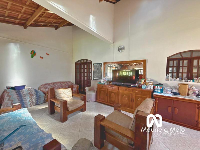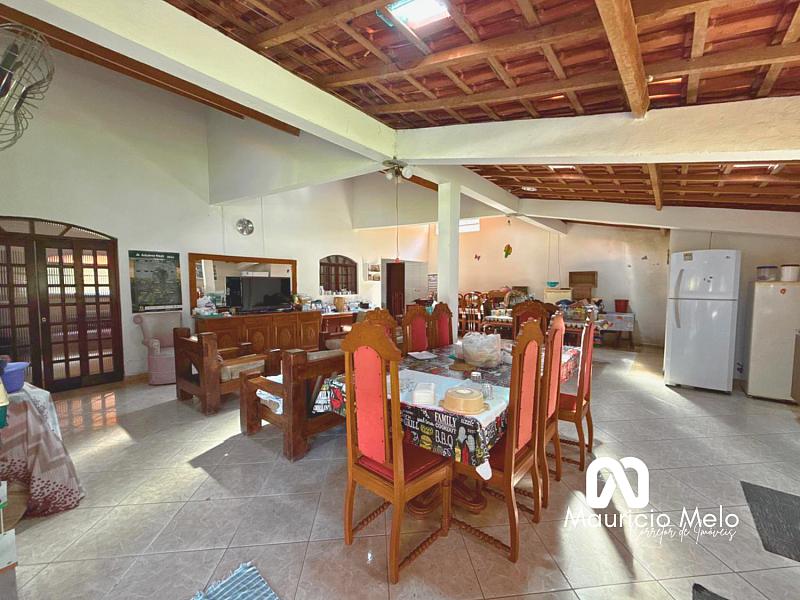 A casa sede é ampla e avarandada, com 4 dormitórios, sendo 1 suíte, sala de estar confortável, cozinha funcional, banheiro social e espaço de jantar, ideal para reunir família e amigos. A varanda oferece uma vista privilegiada da natureza e um pôr do sol marcante.